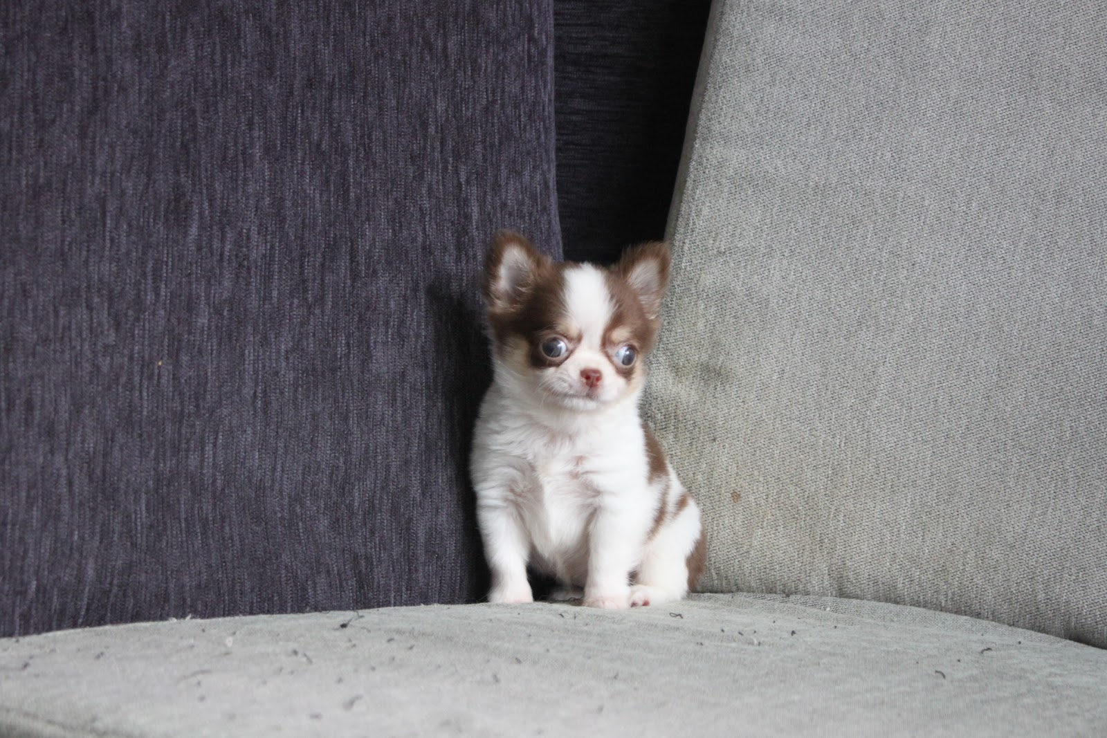 10/17出生 高端優質近茶杯長毛吉娃娃巧克力白花妹妹(12/26拍攝)
